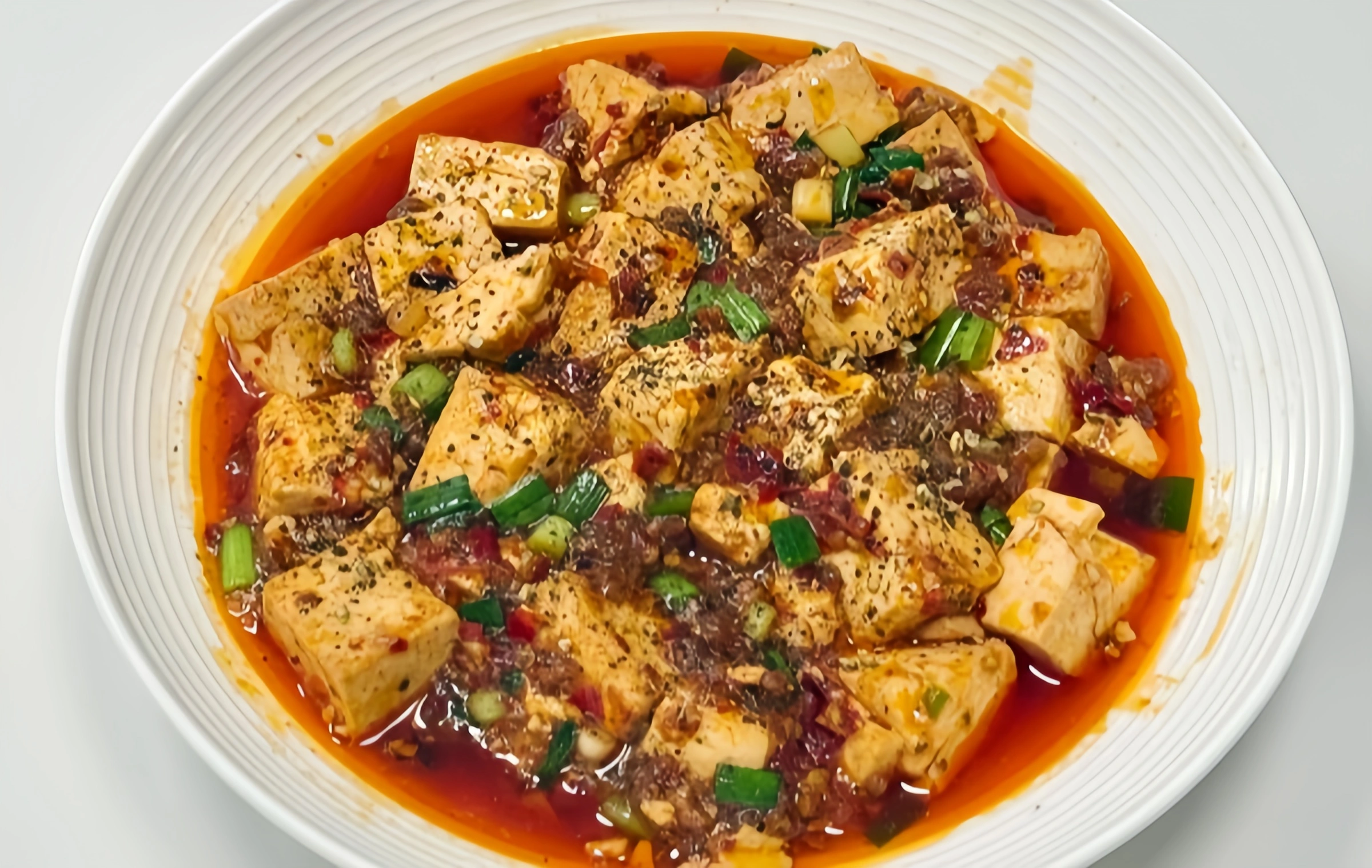 Characteristics: Mapo Tofu is a classic Sichuan dish that combines soft, silken tofu with a spicy, aromatic sauce. The dish gets its name from the "ma" (numbing) sensation of Sichuan peppercorns and the "po" (pockmarked) appearance of the minced pork or beef. The sauce is made from chili bean paste, garlic, ginger, and a touch of sugar, creating a perfect balance of heat, umami, and subtle sweetness.
