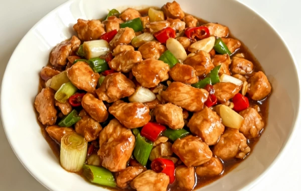 Characteristics: Kung Pao Chicken is a stir-fried dish that features tender chicken pieces, peanuts, and vegetables (such as bell peppers and scallions) in a savory, slightly sweet, and spicy sauce. The dish gets its signature kick from dried chili peppers and Sichuan peppercorns, which add a numbing sensation to the mix.