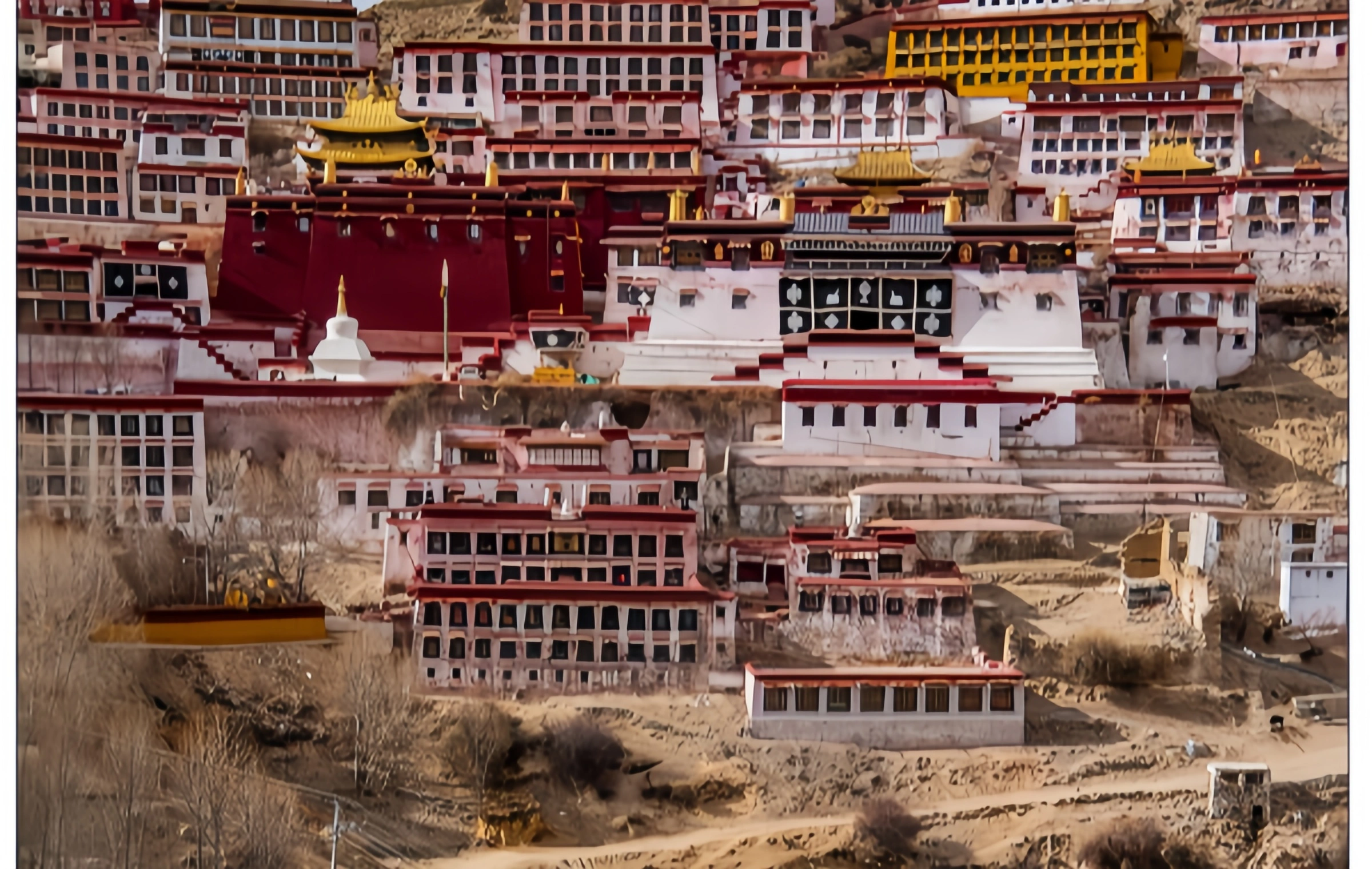- Upper Monastery (Jangtse): The spiritual heart, housing the main assembly hall (Dukhor), the Tsongkhapa Chapel, and the stupa containing his relics.