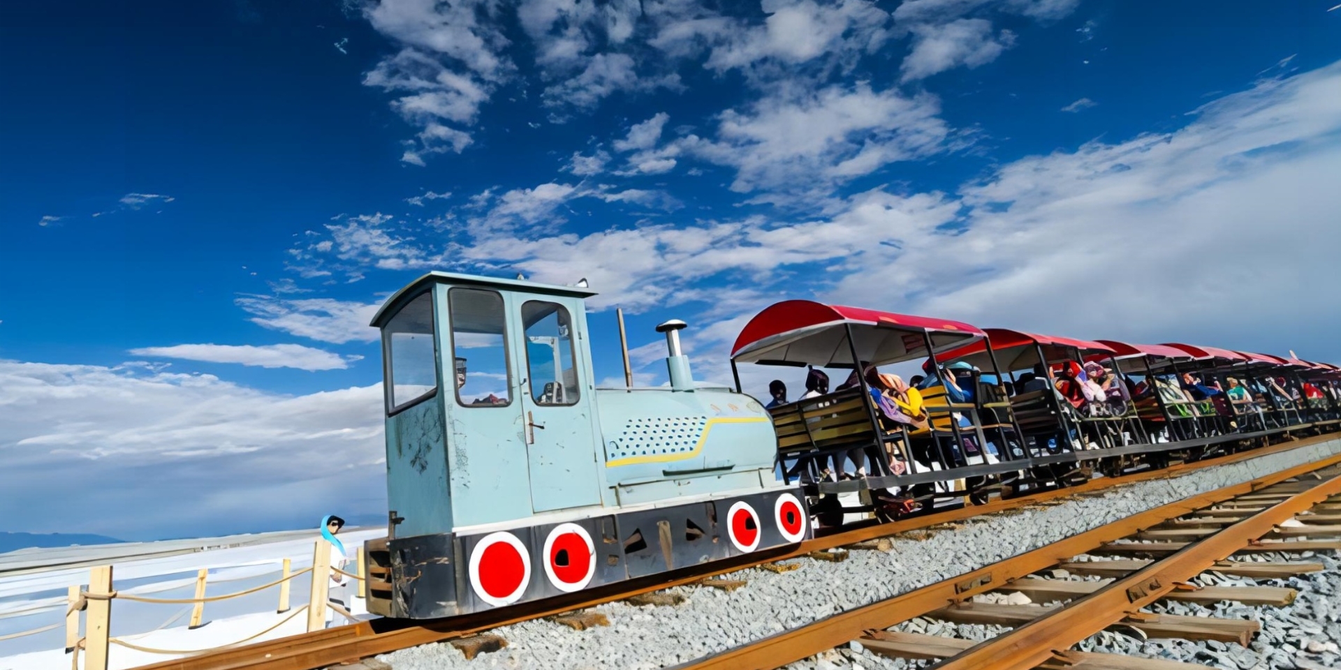 At Chaka Salt Lake, we have a variety of ways for you to explore. To make the most of the view and avoid possible crowds, you will take a scenic train ride right to the center of the lake and then a leisurely walk of about 40 minutes back to the entrance. Of course, you can also take the scenic train back if you choose a more relaxed approach. Walking on the salt crystal lake is like being in a painting, but please note that due to the corrosive nature of the salt water, it is recommended that you wear shoe covers to protect your feet.