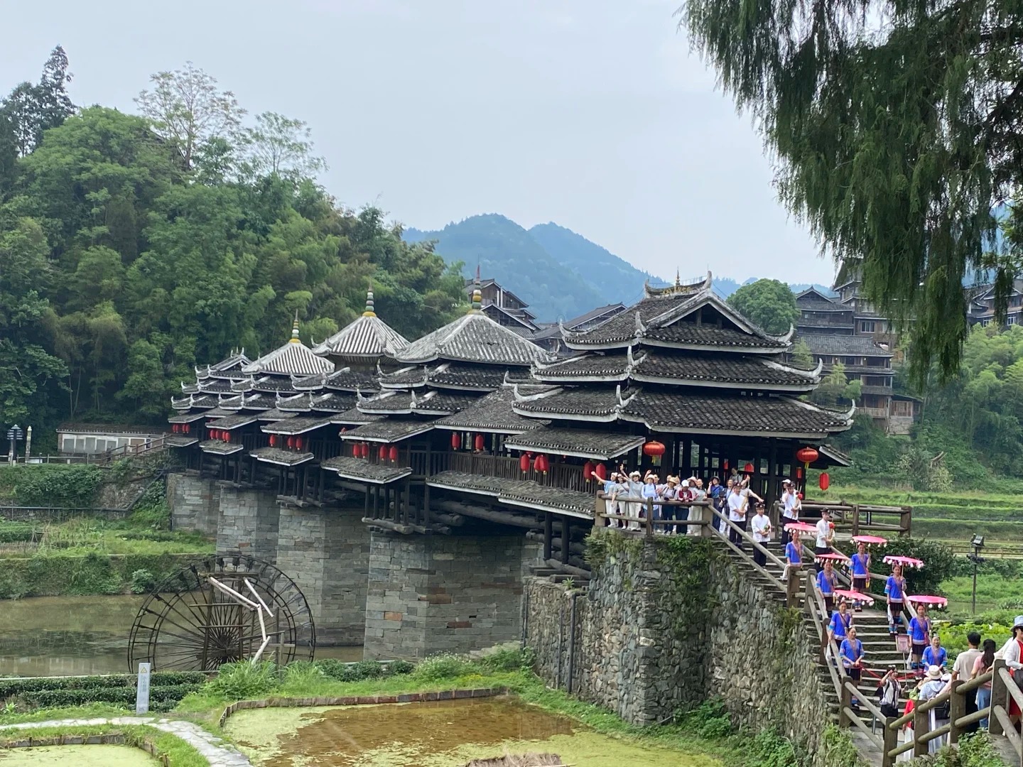 ChengyangWindRainBridge: This iconic bridge, spanning 64 meters across the Linxi River, is a masterpiece of Dong architecture. Built without nails or rivets, the bridge combines a covered walkway with pavilions, providing shelter from the elements. Its unique design has made it a symbol of Chengyang Eight Villages and a popular subject for photographers.
