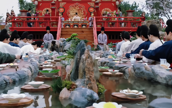 Historical Context: During the Tang and Song dynasties, scholars and poets would gather outdoors to compose verses inspired by spring’s beauty, a tradition known as floating wine cups along a winding stream (曲水流觞, qū shuǐ liú shāng). Participants would place cups in a stream, and whoever caught one had to recite a poem or drink as punishment.