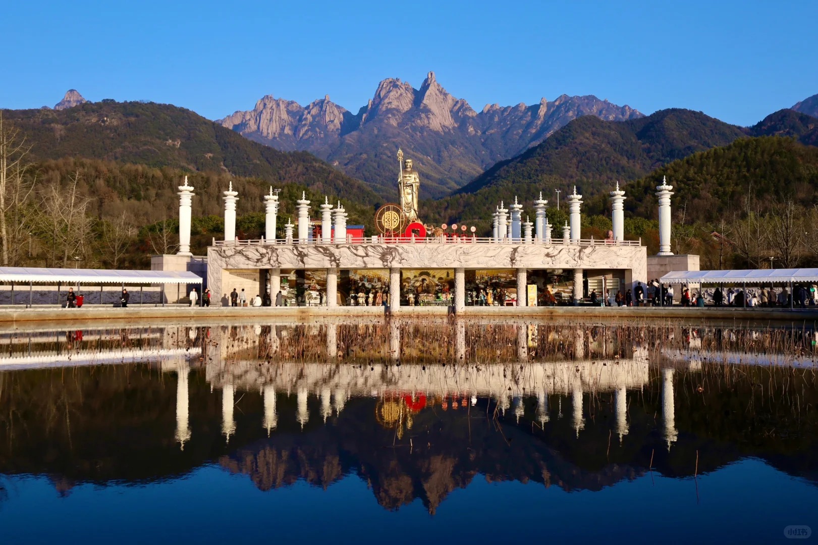 - Bronze Statue of Kṣitigarbha: A 99-meter-tall gilded statue atop Shiwang Peak, visible from miles away.