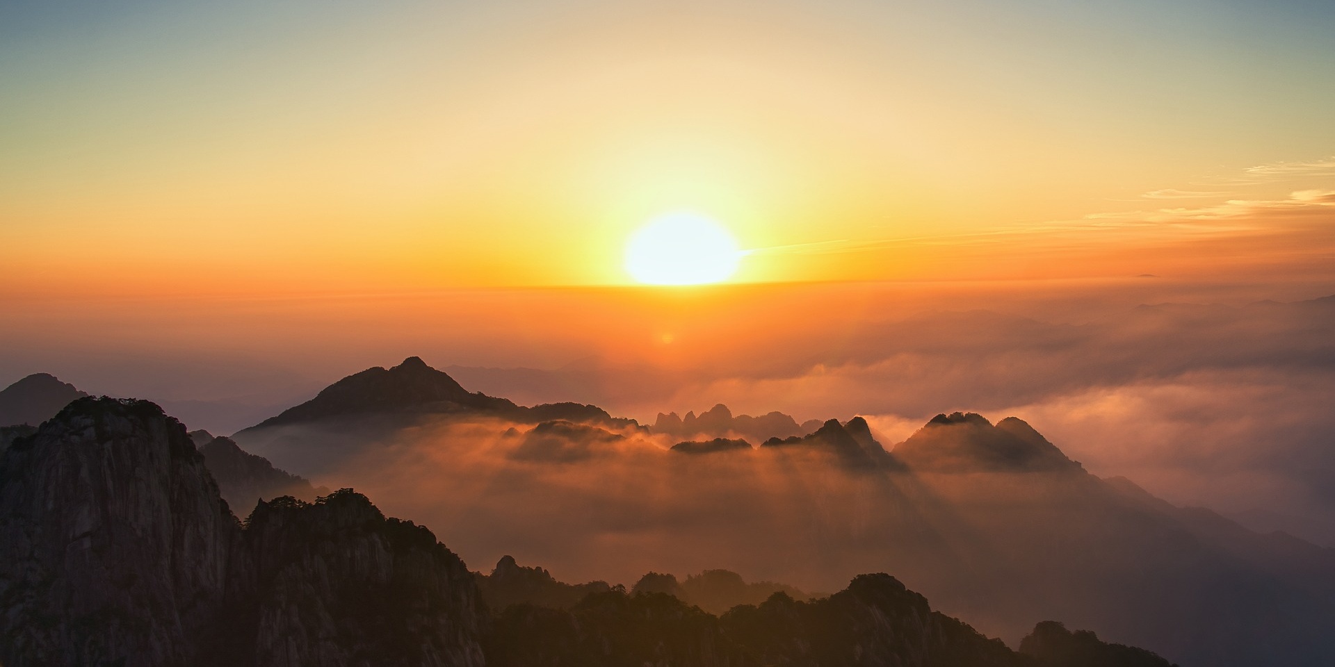 Huangshan are,misty and cloudy. The vapors coagulate to form a sea of